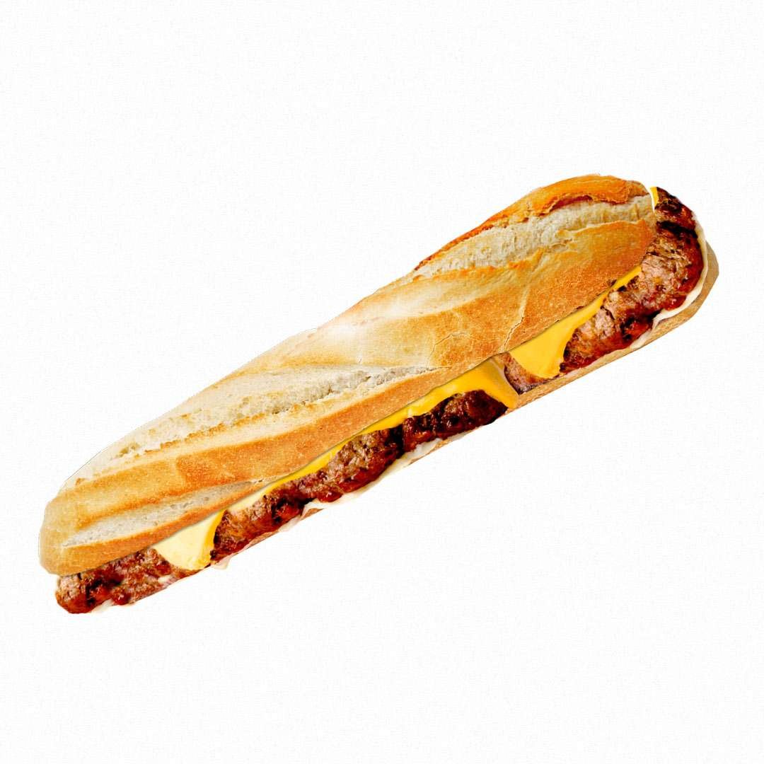 Si deseas lo mejor de ambos mundos puedes elegir una baguette de cheeseburger. Viene con una jugosa carne de magro, especias, junto con un baño de queso cheddar para que tu paladar explote de felicidad.